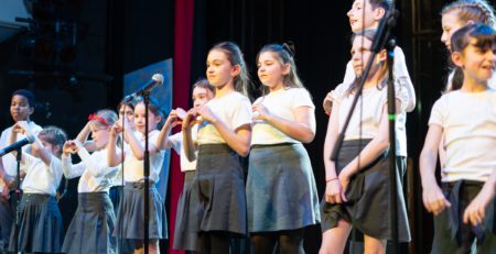 The children and staff travelled from their schools to Gravesend and rehearsals were in full swing from 2 pm. At 6 pm, the doors opened, welcoming the excited audience to a night filled with musical delight. The concert opened with a merry rendition of “Celebration” by Kool and the Gang, performed by the entire choir. Each school then took turns presenting a song from every year of the last decade.